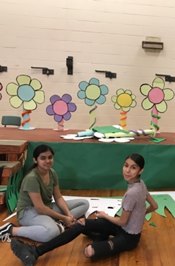 Stephanie and Emily working on sets.