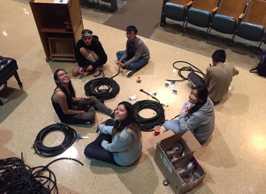 The crew looks intently at the electric pipe.