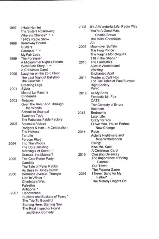 PLAYERS GUILD PRODUCTIONS 1997-2016