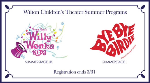 Finally, we extend our heartfelt gratitude to our generous patrons for your continued support of Wilton Children’s Theater. Your contributions, recognized in this program, enable us to provide vital scholarships each year and ensure that theater remains accessible to all.
